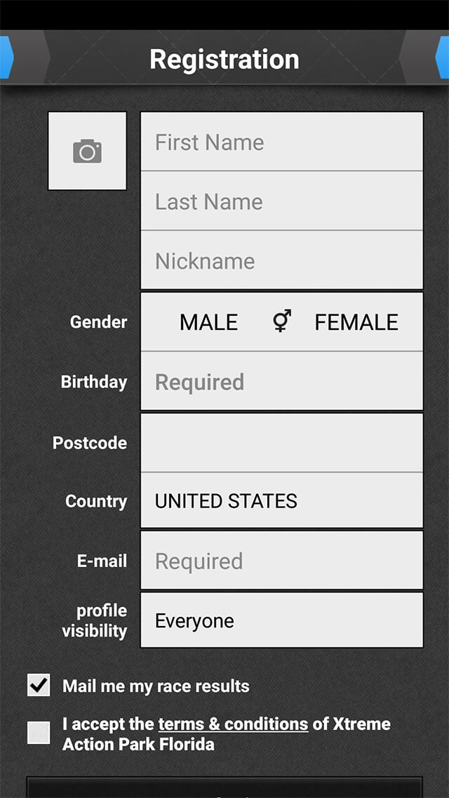 Prospective members can download the app before they arrive to reduce wait times at registration. You can even login with your facebook account for quicker enrollment.  However, your access will only be established once you have purchased a race license at guest services.  Private parties and Events can also download the app before they arrive and are granted one day access the day of their event.